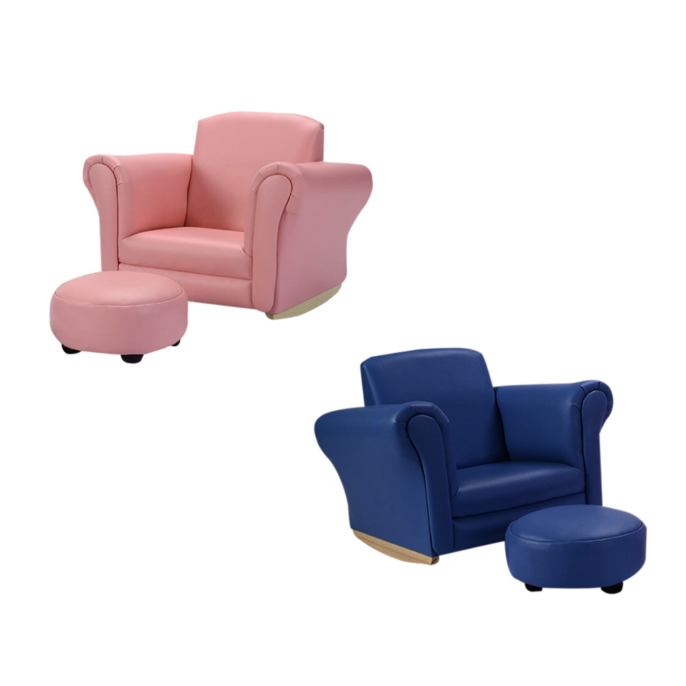 Xs Stock Children S Pu Leather Look Rocker Rocking Armchair Seat Footstool Baby Blue