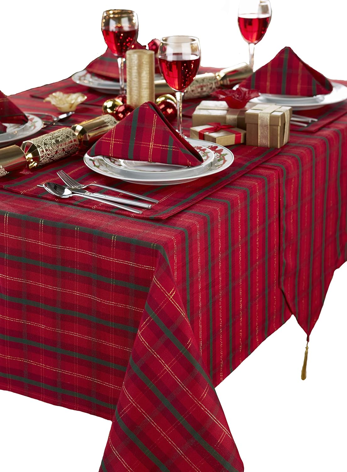 Tartan Red Gold Christmas Rectangular Tablecloth Ideal For 6 8 Place Settings 52x90in 132x228cm Approx
